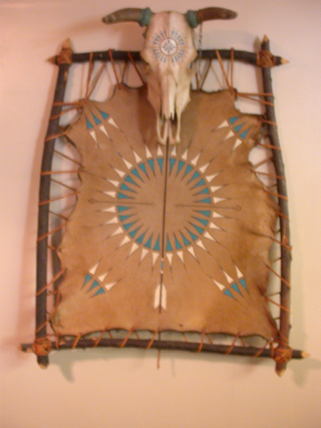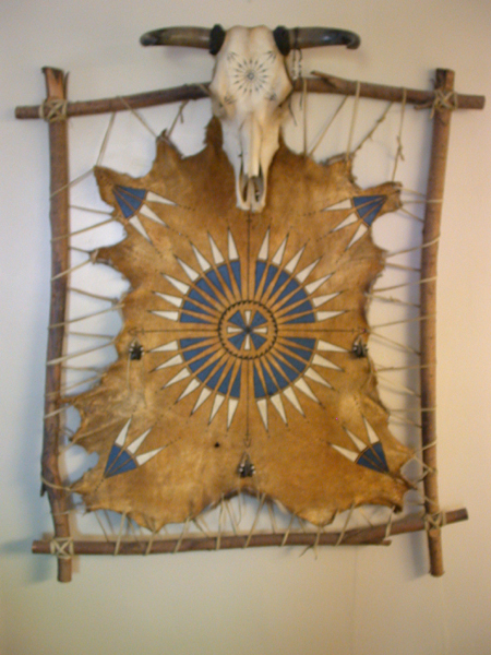Hide Stretched with Rawhide on Willow Frame - 48" x 55"